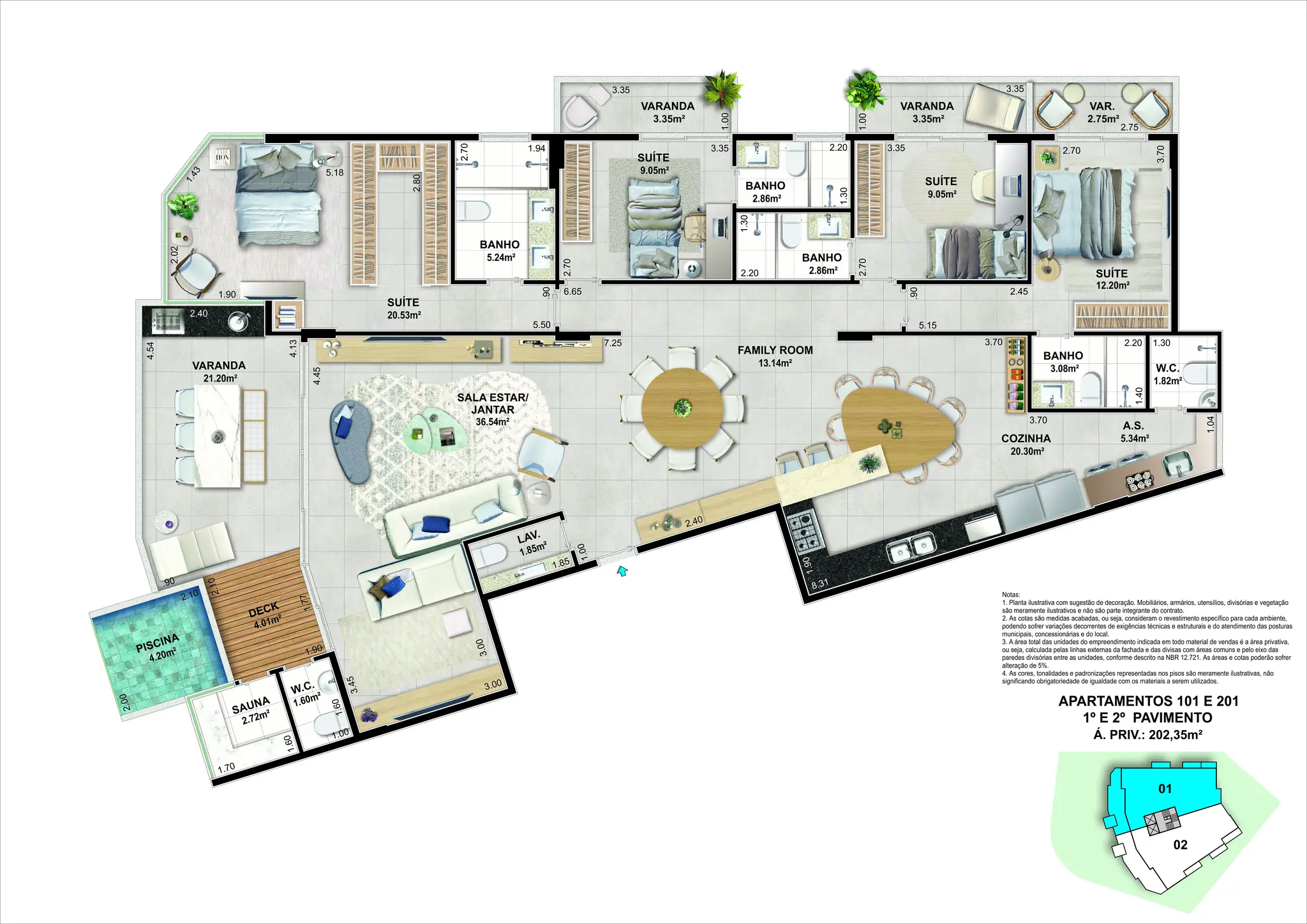 Piscinas e saunas privativas em todas as unidades, design contemporâneo e acabamentos impecáveis fazem deste empreendimento uma experiência única.